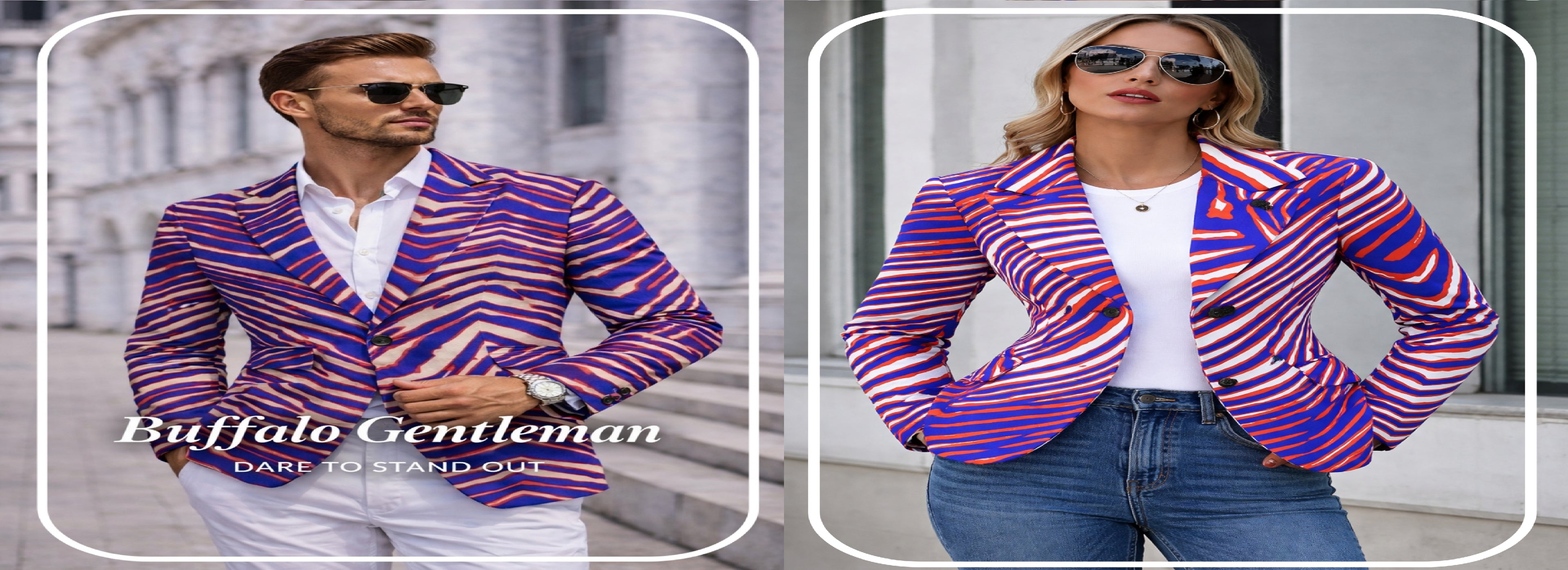 Buffalo-inspired football blazersΒ with bold zebra and retro patterns