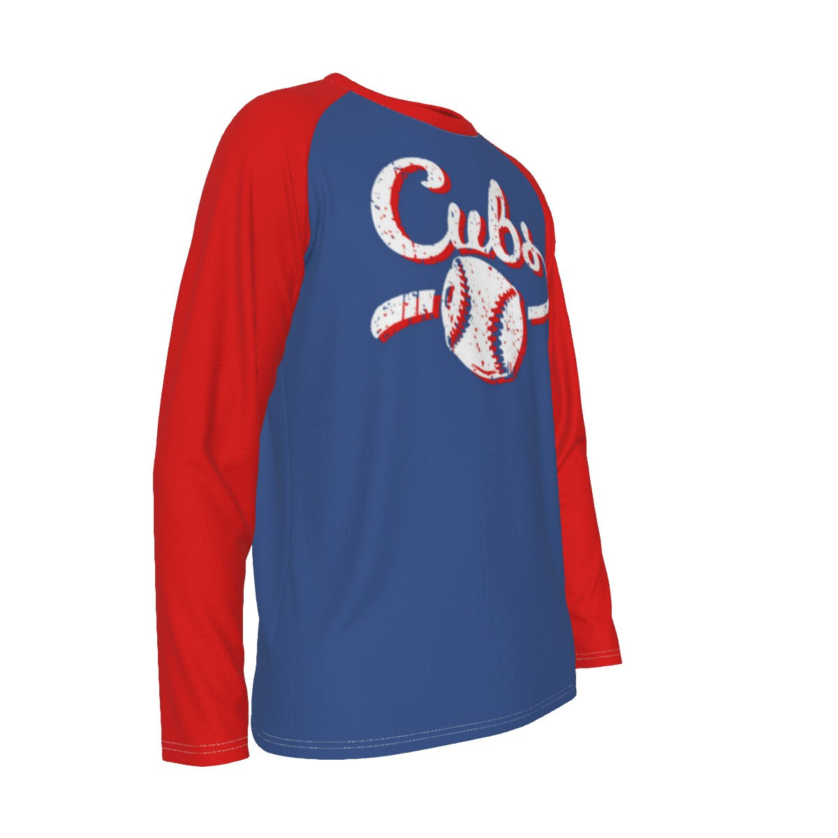 If you're searching for a bold Chicago baseball blue and red shirt, this vintage-inspired long sleeve raglan tee delivers that classic North Side baseball energy.