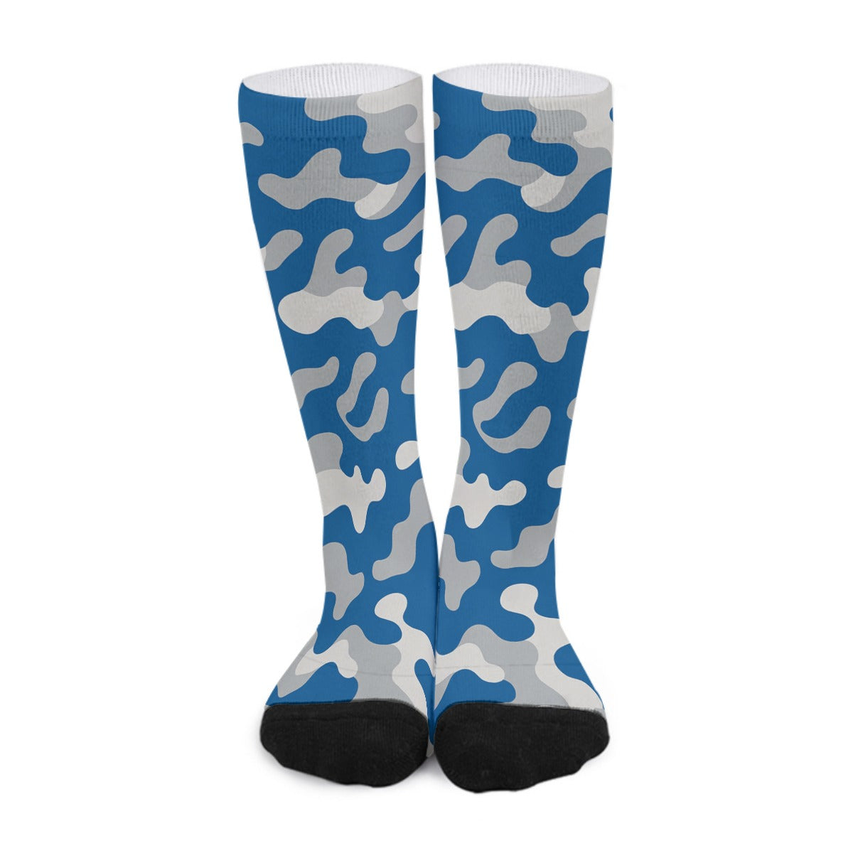 Crafted from breathable stretch fabric, these camo long socks provide flexibility, support, and all-day comfort. The dynamic blue and silver camouflage design adds a powerful edge to your football-inspired outfit — pairing effortlessly with sneakers, boots, joggers, shorts, or layered cold-weather gear.