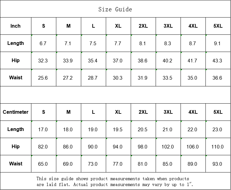 | Waist | 65.0 | 69.0 | 73.0 | 77.0 | 81.0 | 85.0 | 89.0 | 93.0 |