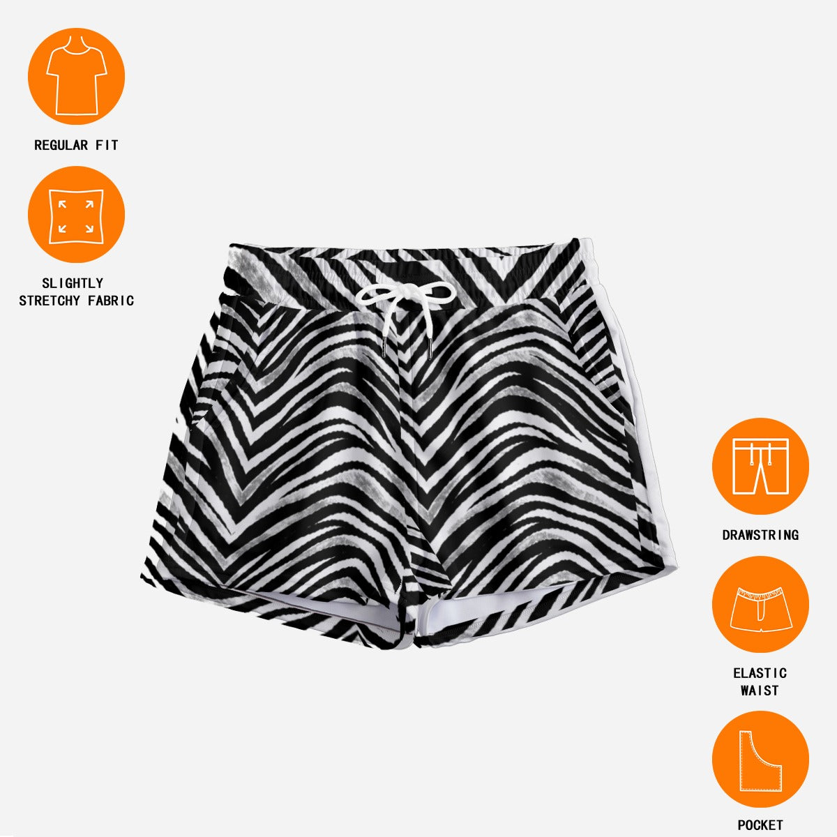 These zebra women’s casual shorts are perfect for football fans searching for Las Vegas football women’s shorts, black and white game day shorts, zebra casual shorts for women, football streetwear shorts, and urban fan fashion. Designed for comfort and standout style, they are a strong addition to any modern football streetwear wardrobe.