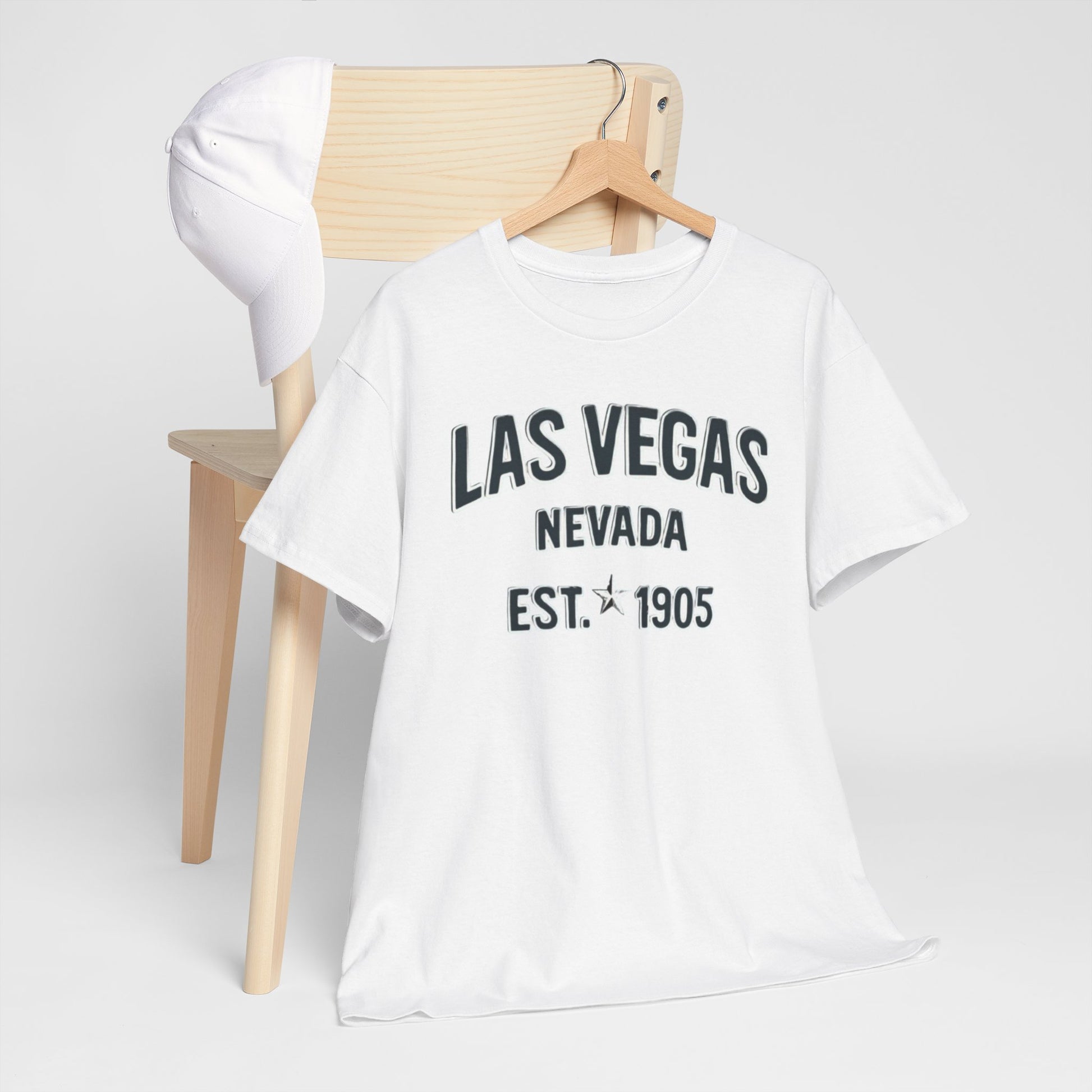 A soft, timeless tee that carries a quiet nod to Las Vegas history. Printed on a sturdy, smooth cotton body, the vintage-inspired typography sits slightly arched over ‘Nevada’ and a subtle ‘EST. 1905’, like a souvenir reclaimed from an old postcard. Wear it on easy days—walking the Strip at dawn, lounging with friends, or tucked under a jacket for a casual night out. The relaxed cut and crew neckline keep the silhouette familiar and comfortable, while the muted print lets the shirt feel lived-in and personal rather than flashy.