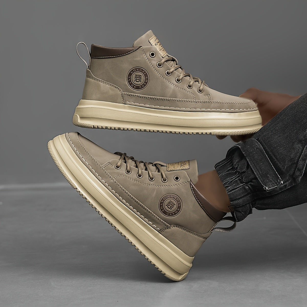 Men's Lightweight Platform Sneakers with Thick Sole - Mid-Top Casual Sports Shoes, Upper & Cushioned Footbed for, Outdoor, Gym, Streetwear - All-Season Round Toe Design (Men's Fashion)
