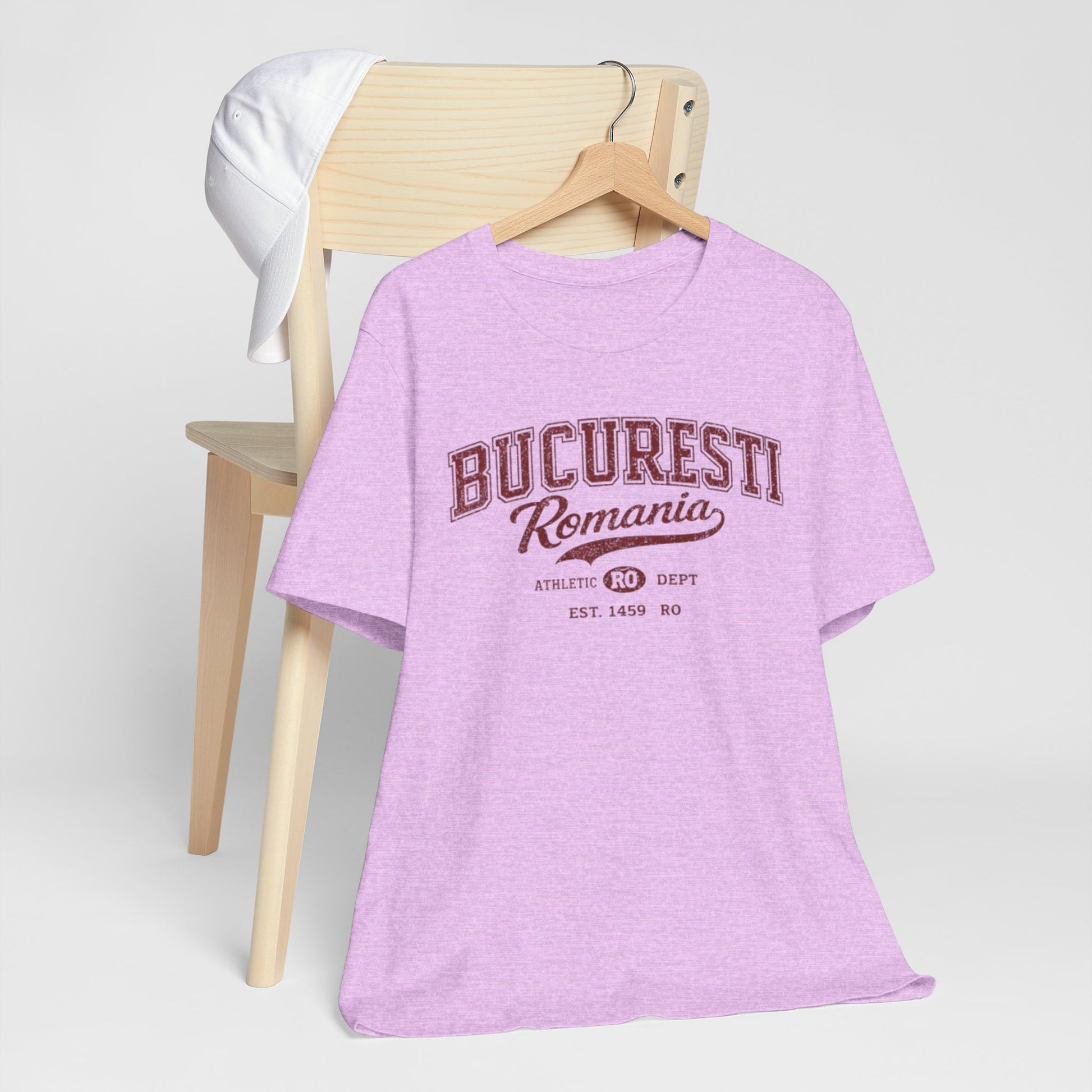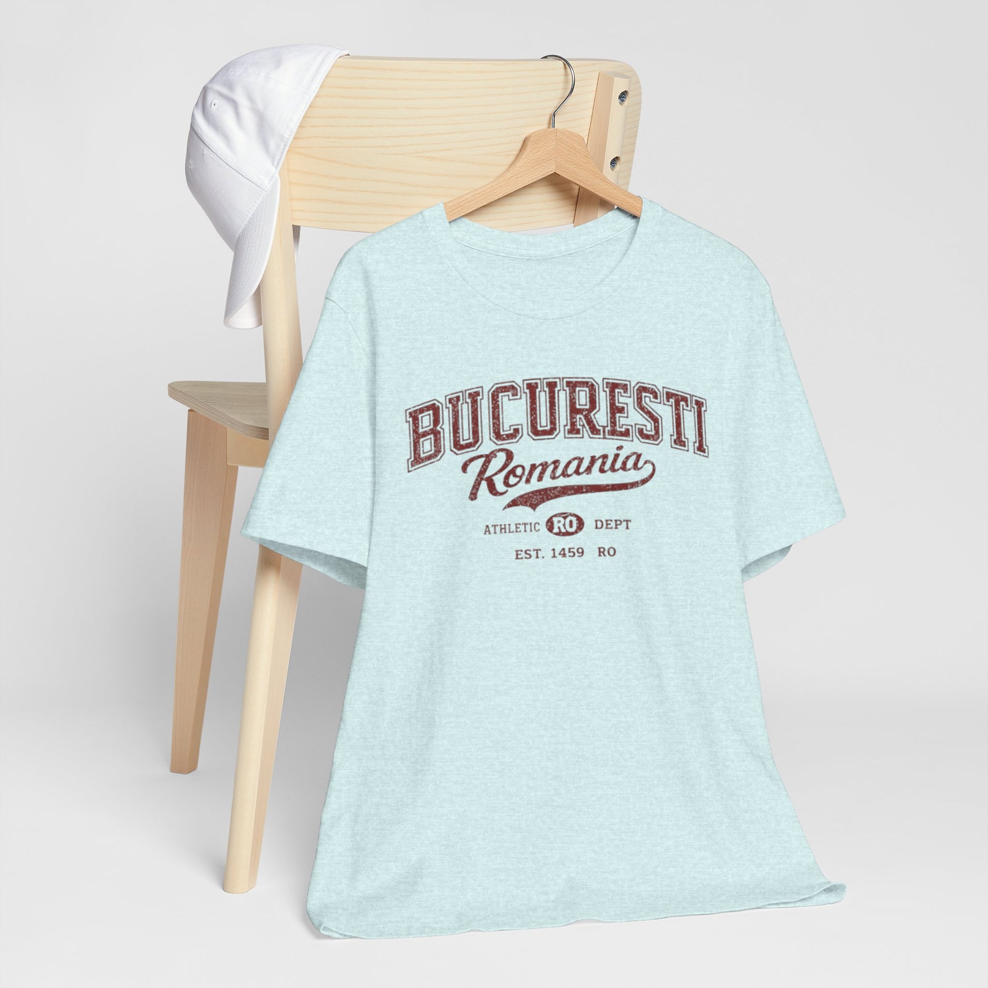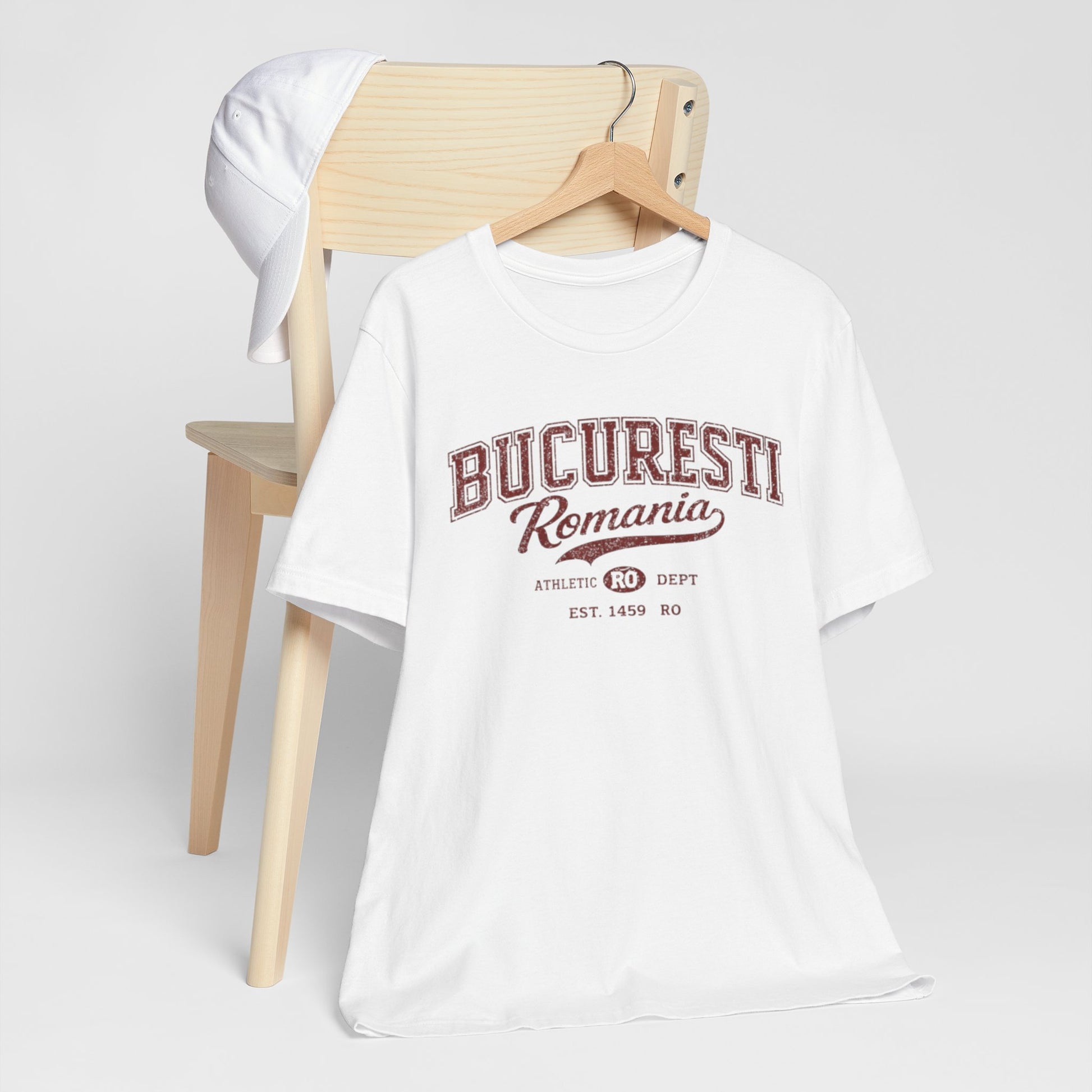 Un tricou moale și respirabil, care poartă pe piept sloganul discret al orașului natal — „București România” — cu un inscripție universitară vintage. Bumbacul ușor Airlume, pieptănat și tors în inel, îi conferă o drapaj ușor și uzat, care se poate purta bine sub jachete sau singură în zilele călduroase. Decolteul rotund și croiala tip „august” mențin silueta clasică și curată, în timp ce cusăturile laterale și banda de pe umeri își păstrează forma la spălare după spălare. Literele subtile cu aspect distressed și motivul departamentului de sport îl fac să pară un suvenir de călătorie pe care îl cauți iar și iar.
